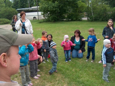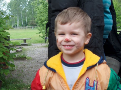 Jeśli się mały człowiek obudzi o 5 rano i już całkiem nie może spać, to znaczy, że wydarzy się tego dnia coś ważnego. Ja właśnie tak miałem. Wycieczka!!! Do miejsca, gdzie Radosne Maluchy jeszcze nie były- do Choszczówki, do Dzikiego Zakątka. Dzieci już znają sie dobrze na autobusach, więc mogą być zupełnie spokojne i grzecznie siedzieć na fotelach. A na miejscu czekał na nas świetny plac zabaw. I dużo nowych Pań, które chciały się z nami bawić. Mieliśmy też konkurs na malowanie buzi. Dziwne to było. Dziewczynom zrobiły się fioletowe oczy, a ja miałem samochód na ręce. A jak ktoś bardzo chciał, to mógł nawet zostać kotem. Tylko z osiołkiem i delfinem trochę nie wyszło. Może następnym razem Panie sie nauczą. Potem mogliśmy poudawać, że mamy prawdziwy w-f, czyli taką lekcję, jak w szkole. Przyszedł specjalny Pan i mówił, żebyśmy siali i zbierali ziemniaki, ubierali się w szarfy i biegali w kółko. Wszyscy w koło krzyczeli i bili brawo. Zdaje się, że w szkole jest całkiem zabawnie. Akurat gdy staliśmy się głodni Panie zawołały nas na drugie śniadanie. Każdy miał swoje pudełko z pysznościami. Mniam. Pełni sił ruszyliśmy do zabaw z tańcem i śpiewaniem. Udało nam się zaśpiewać o Zorro, pojechać pociągiem i szybko pokazać gdzie mamy ręce, ramiona, kolana, pięty, uszy, oczy i nos. Uff. A to wcale nie był koniec. Czekała nas jeszcze zupa pomidorowa, prawdziwe hot dogi, których mogliśmy zjeść nawet po 3. A na koniec... Pani Paulina pomogła nam powiedzieć naszym Mamom długi wiersz. Panie dały Mamom dyplomy. No a całkiem na koniec, gdy już się trochę martwiłem i niecierpliwiłem- dzieci dostały dyplomy- każdy był inny i na każdym było napisane co innego. Ja się zawstydziłem. Z prezentami w siatkach ruszyliśmy do autokaru. Ale dzień, ale dzień.