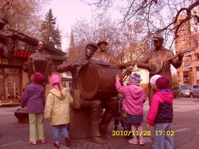Wielkie wydarzenie!!! Wizyta w kinie. Na filmie pt: "RIO". To taki specjalny film, który się ogląda w okularach. No ale od początku. Dziś nie było zajęć w przedszkolu. Zbiórka była na podwórku. I wszyscy razem poszliśmy do kina. Okazało się, że jest jeszcze zamknięte, więc mogliśmy się pobawić wokół złotych panów, którzy mieli różne, dziwne instrumenty i w pewnej chwili zaczęli grać.