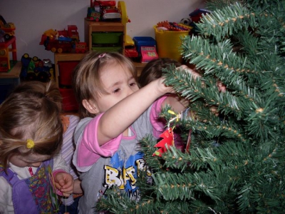 No i znowu był niezwykły dzień w przedszkolu. Panie postanowiły, że musimy poćwiczyć ubieranie choinki. Niedługo jedziemy na wycieczkę i tam podobno będziemy ubierać prawdziwą, dużą choinkę we wszystkie cuda, które tu wcześniej robiliśmy. Wcale nie jest łatwo zrobić tak, żeby długi łańcuch był w każdym miejscu na choince, albo żeby anioł patrzył na nas, a nie do środka drzewka. Całe szczęście, że jest nas dużo. Udało nam się! Jesteśmy gotowi do wyjazdu!!!